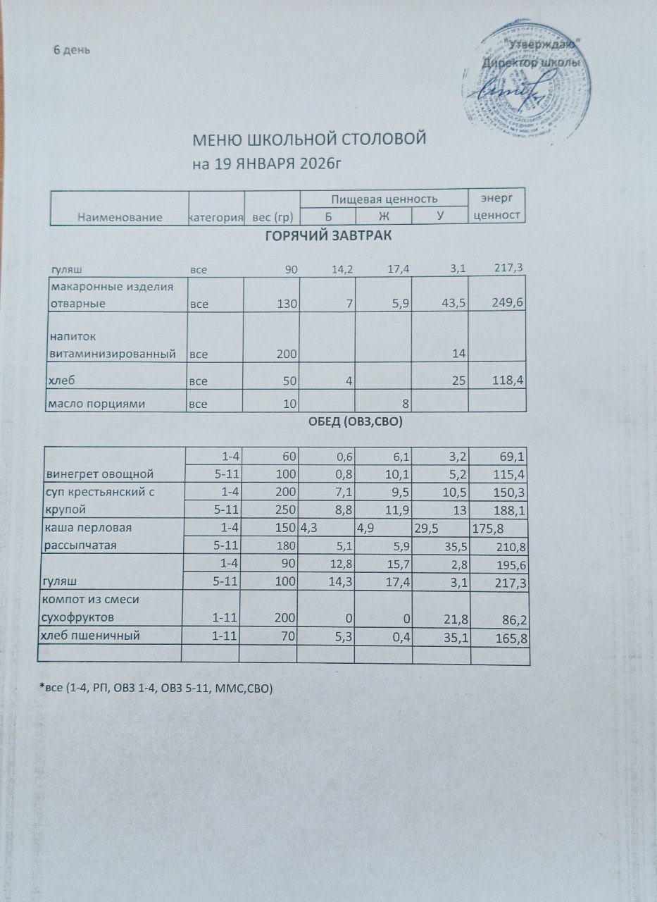 (меню на 19.01.2026)