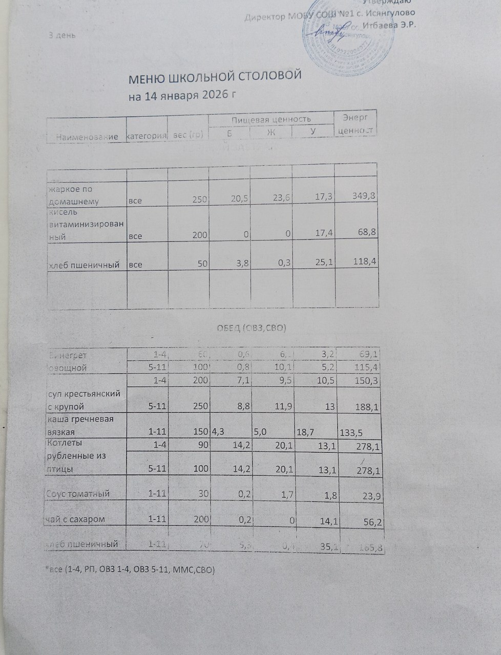 (меню на 14.01.2026)