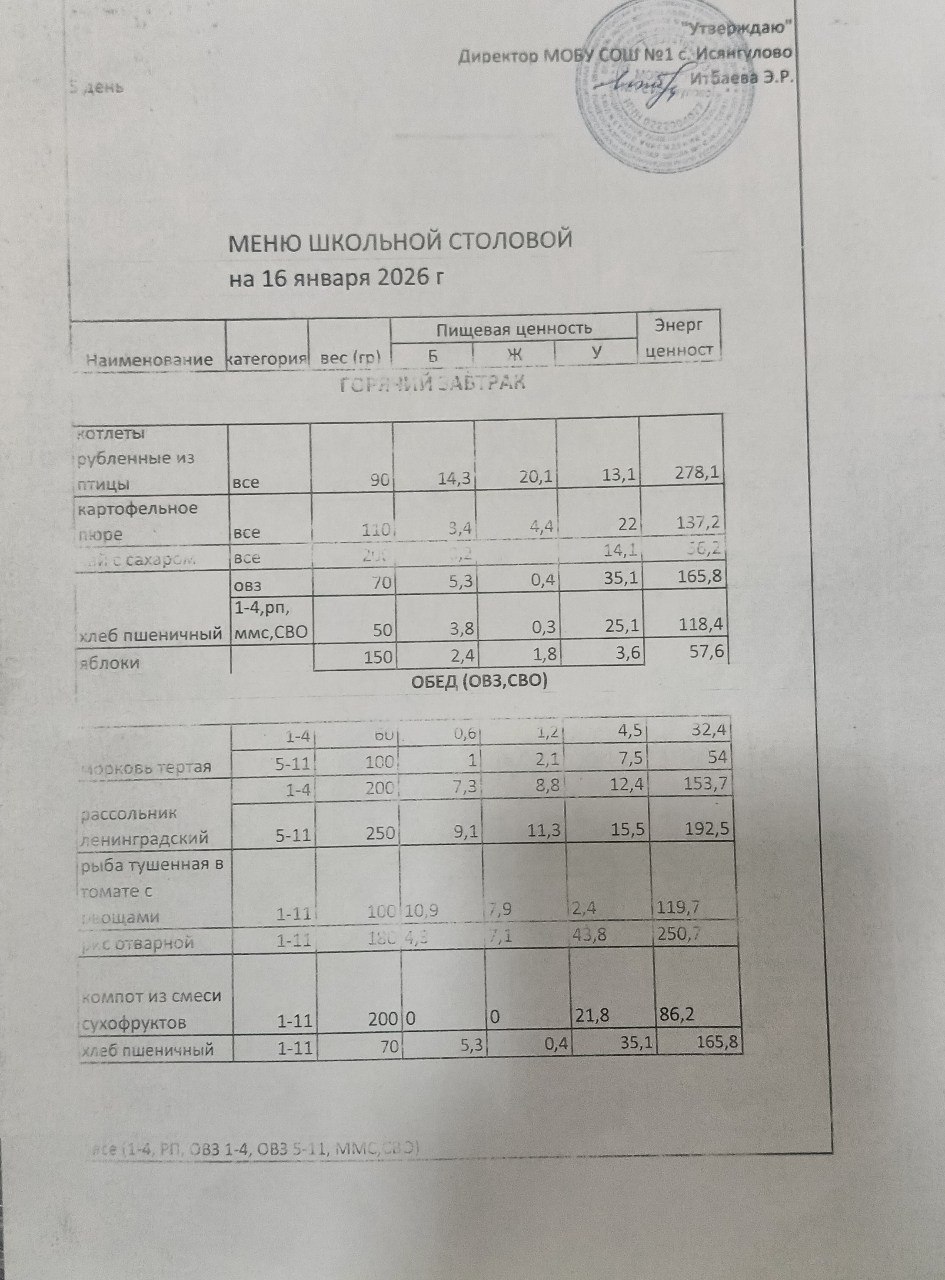 (меню на 16.01.2026)
