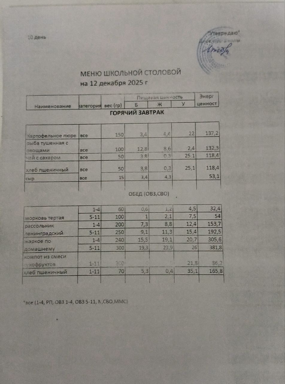 (меню на 12.12.2025)