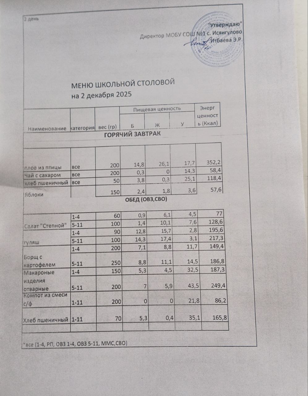 (меню на 2.12.2025)