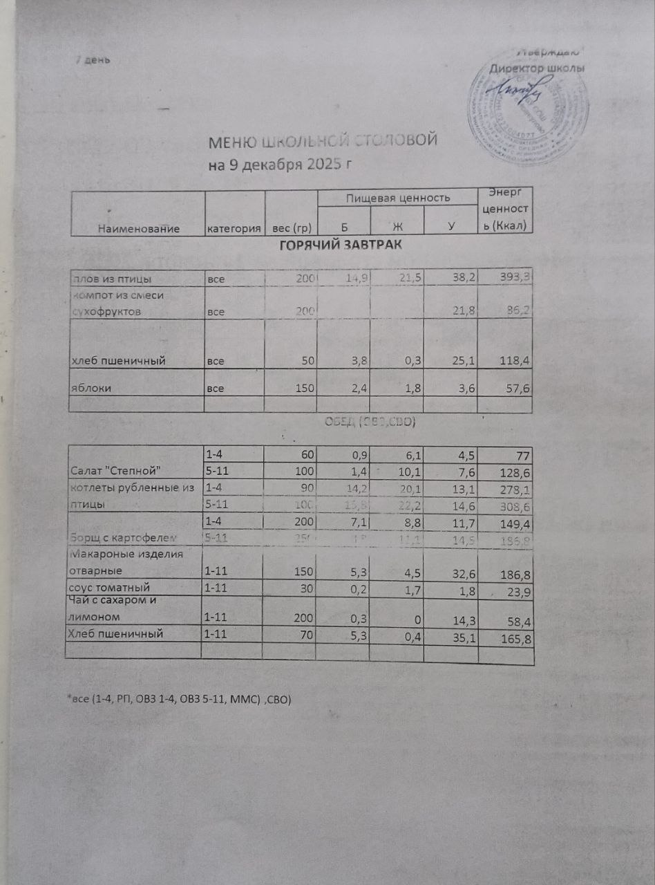 (меню на 9.12.2025)