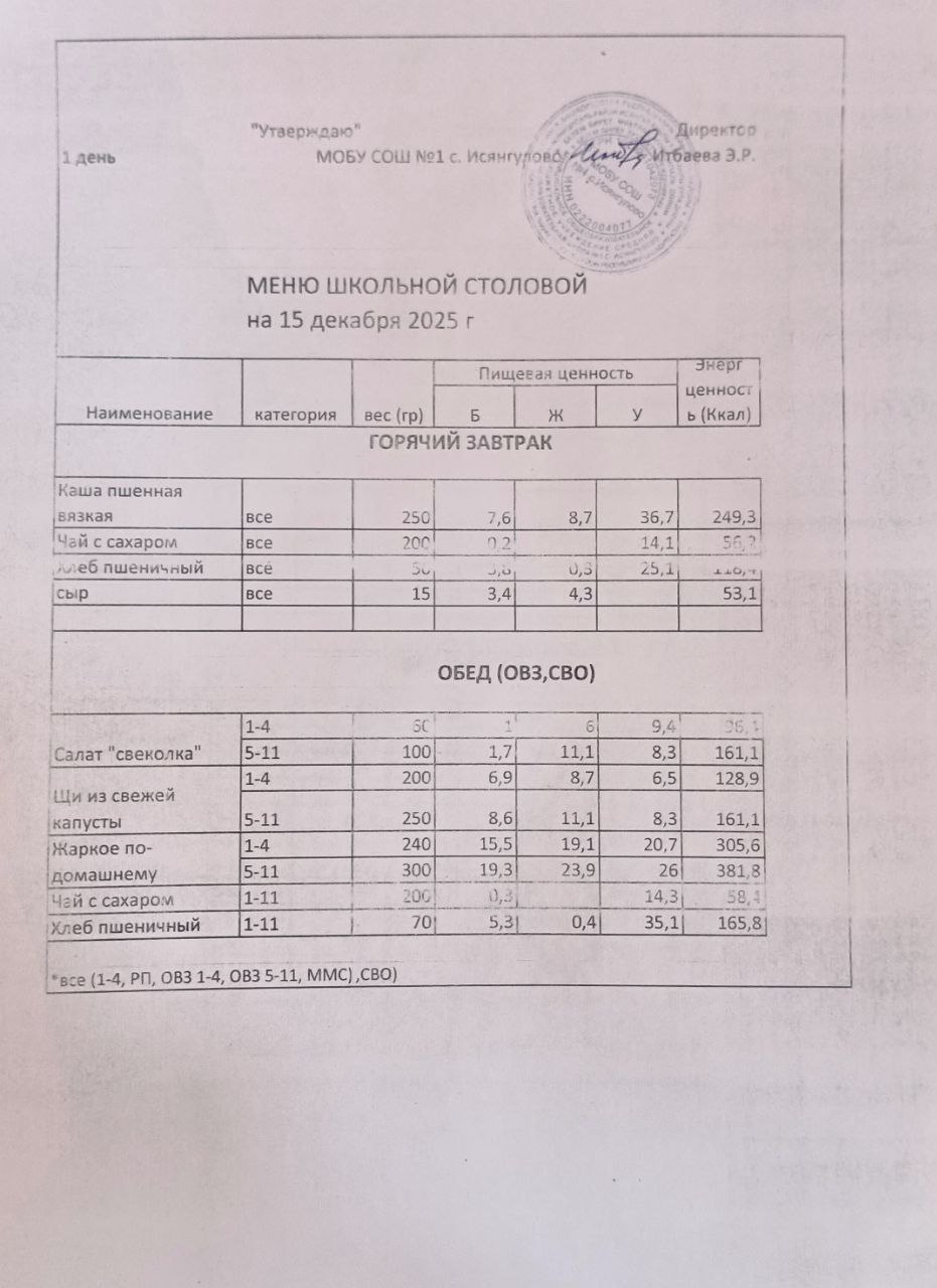 (меню на 15.12.2025)