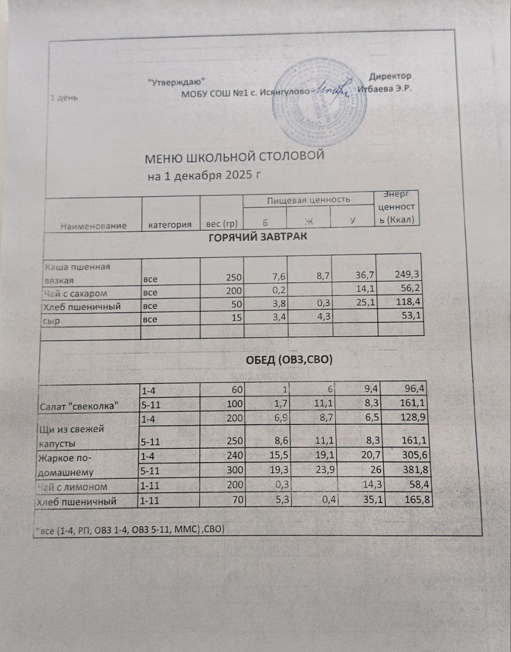 (меню на 1.12.2025)