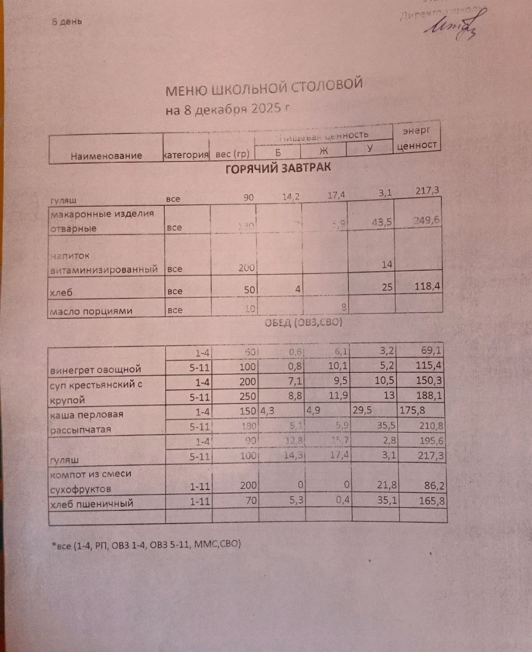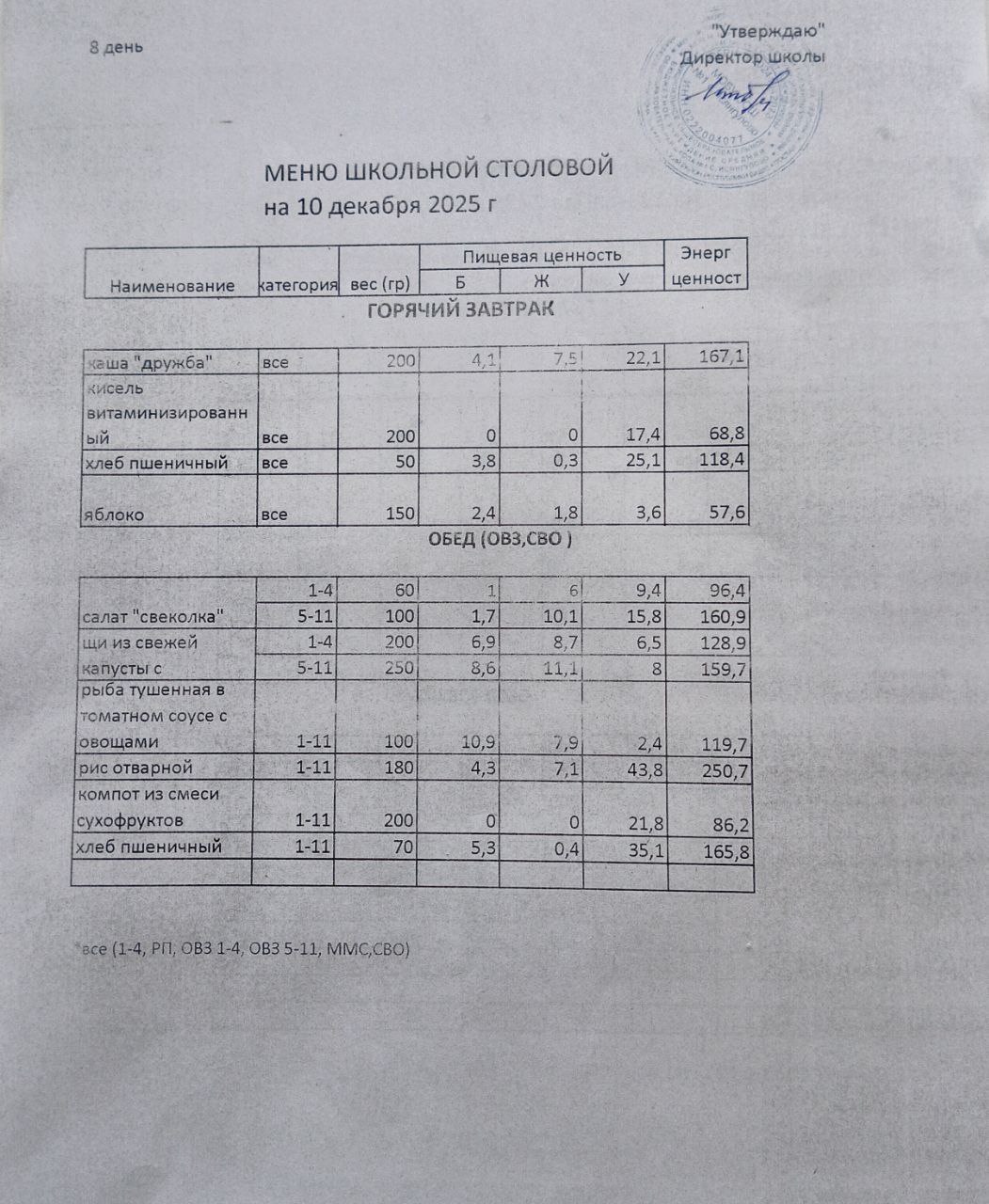 (меню на 8.12.2025)