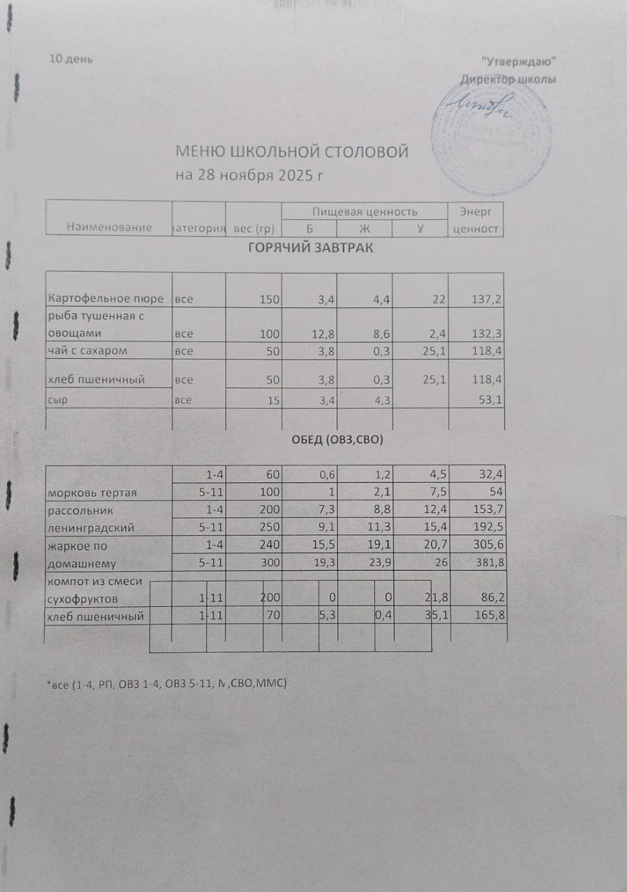 (меню на 28.11.2025)