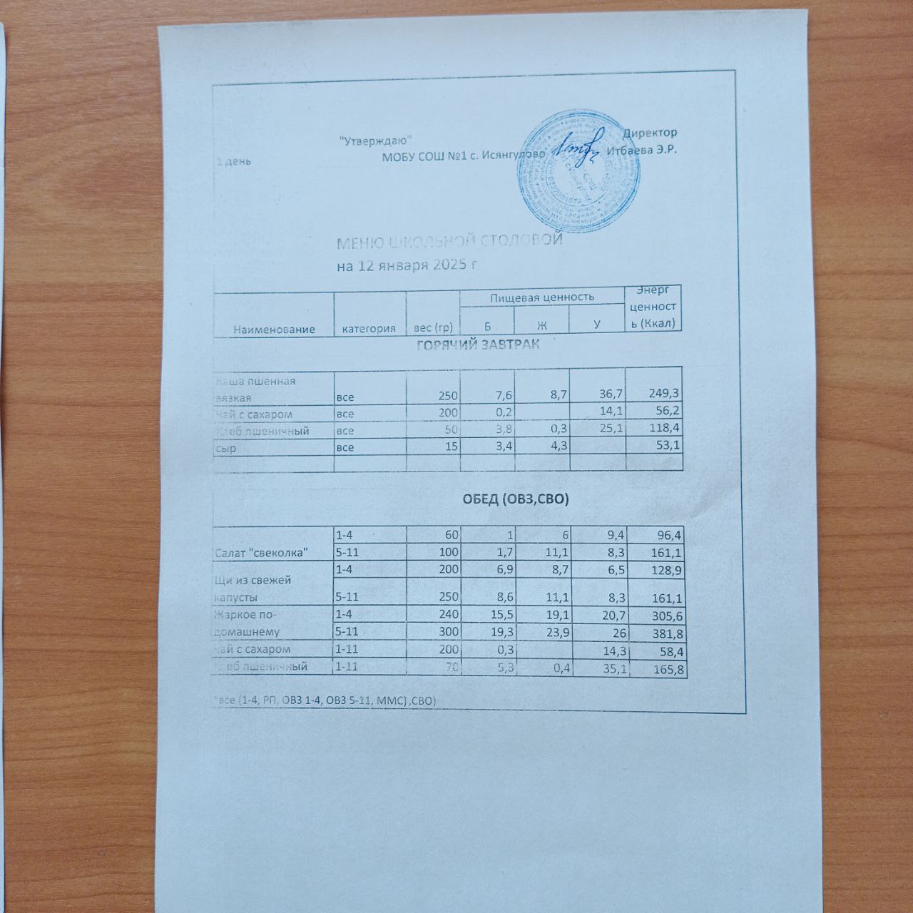 (меню на 12.01.2026)